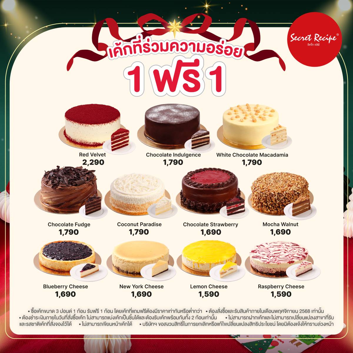 #SecretRecipeThailand #โปรใหญ่แห่งปี #ซื้อ1ฟรี1 #เค้กSecretRecipe #ของขวัญปีใหม่ #ChristmasCake #เทศกาลแห่งความสุข