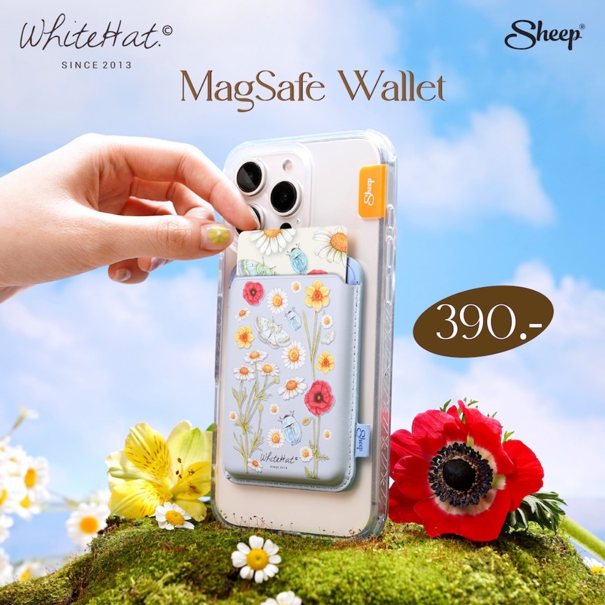 - Magsafe Wallet WHITE HAT – กระเป๋าหนังใส่บัตร โทนสีฟ้าอ่อน สกรีนลายดอกไม้สุดธรรมชาติ ลายเดียวกับเคสไอแพด ที่สามารถใส่การ์ดได้สูงสุด 3 ใบ *รองรับเฉพาะ Magsafe เท่านั้น