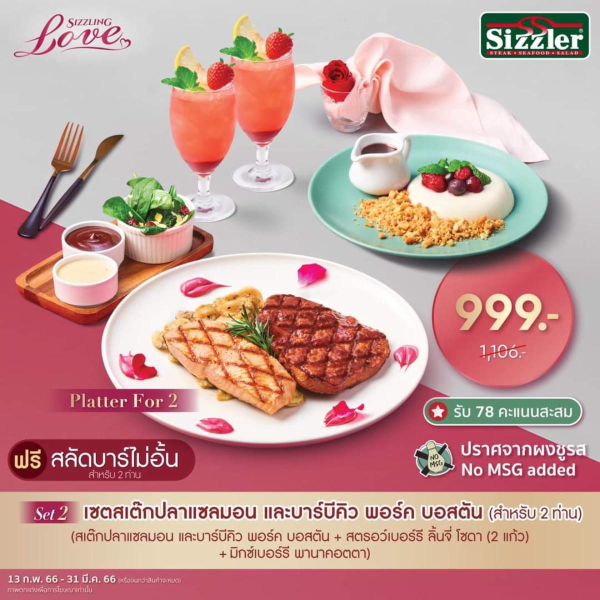 15 ก.พ. 2566ฉลองช่วงเวลาแห่งความรักที่ Sizzler พิเศษสำหรับสมาชิก รับคะแนนX2 เฉพาะเมนู Sizzling Love