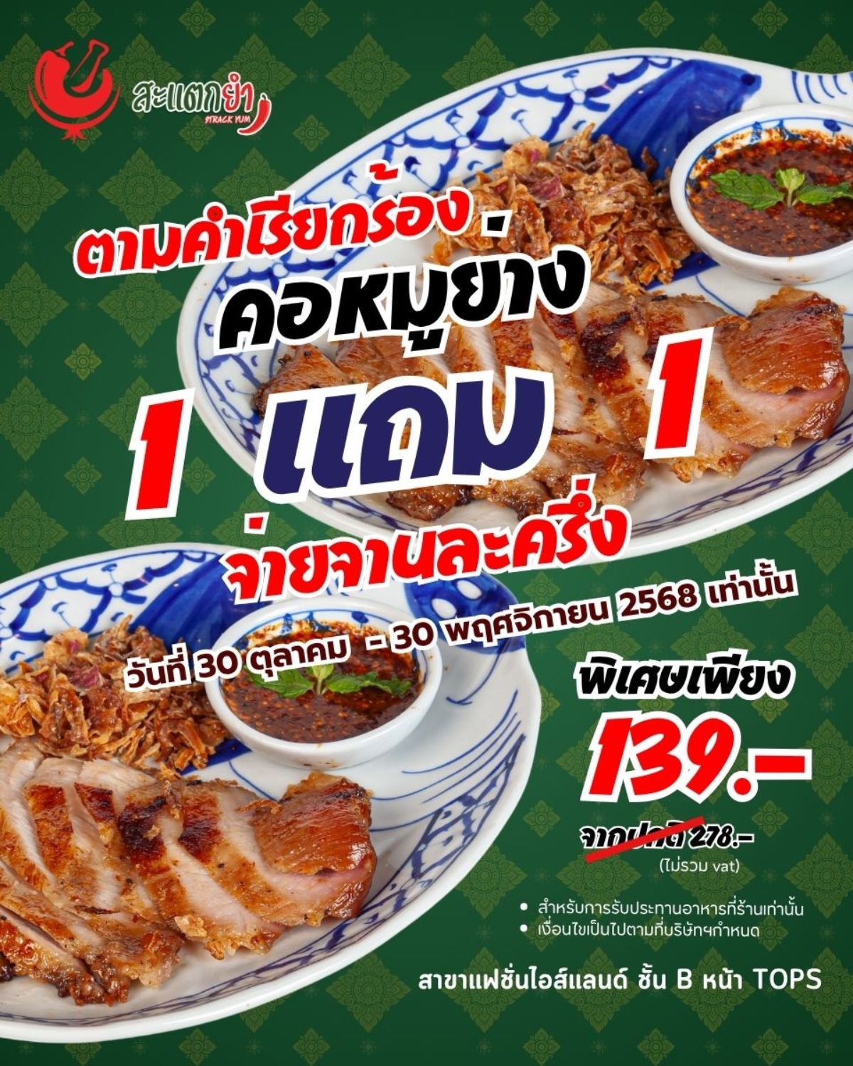 คอหมูย่าง #สะแตกยำ 1 แถม 1 จ่ายจานละครึ่ง!