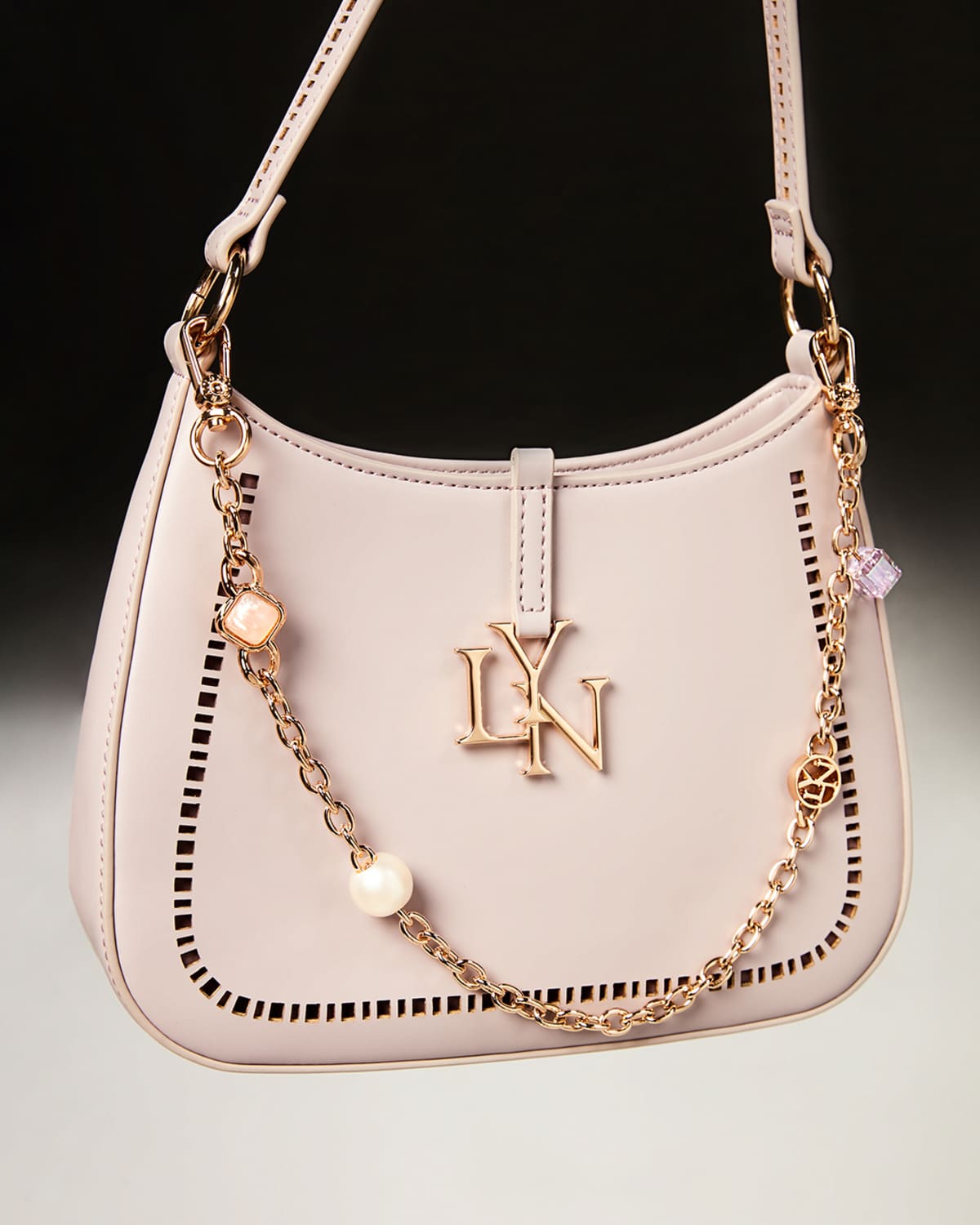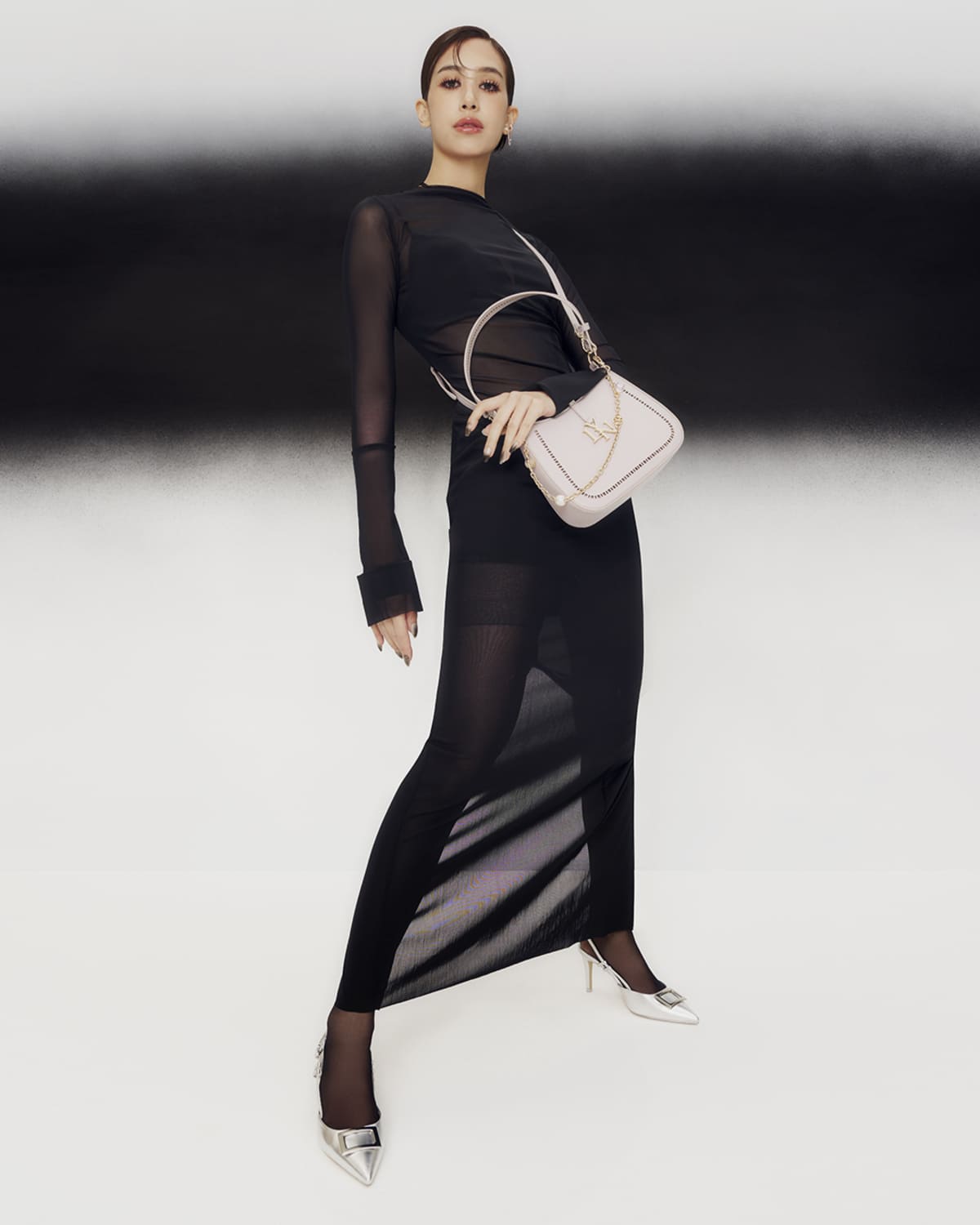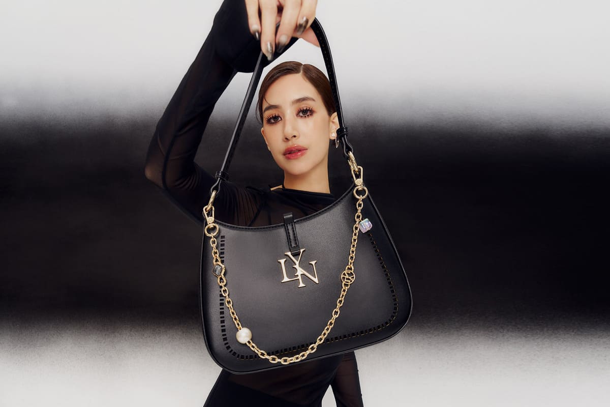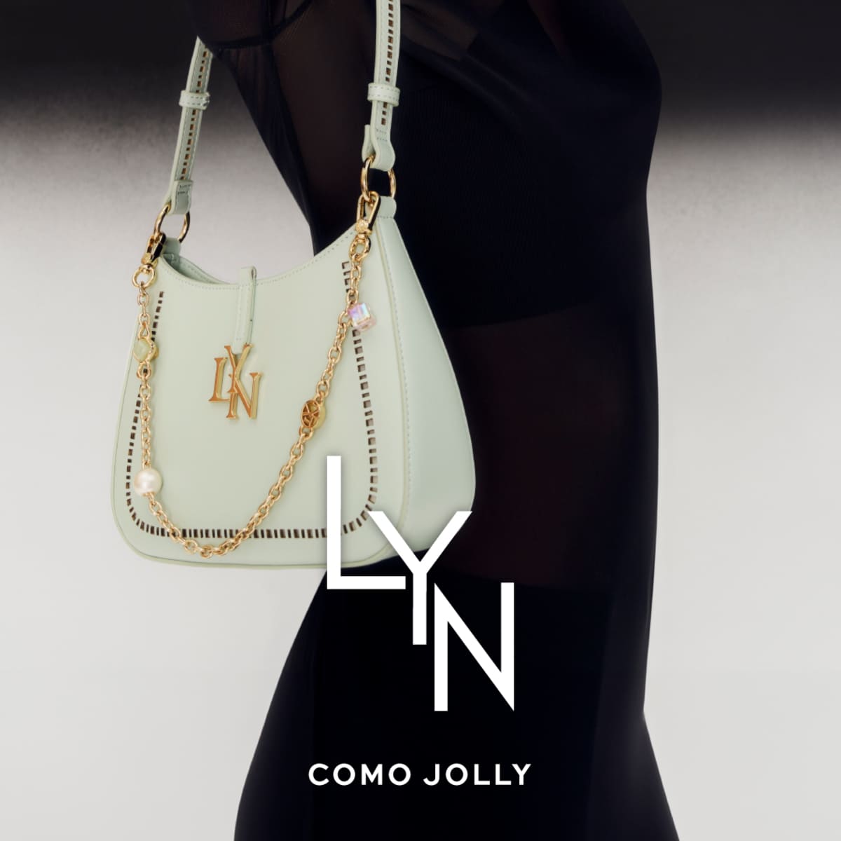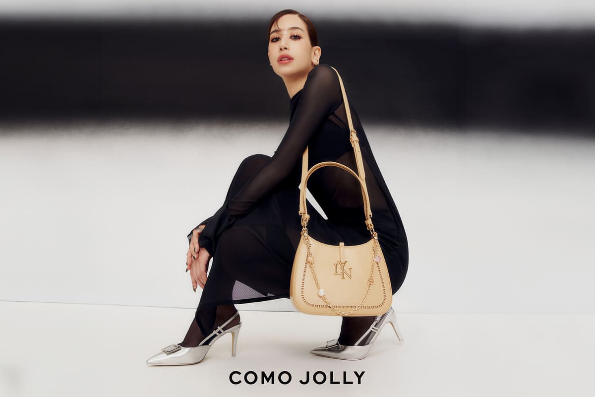 COMO JOLLY ชิ้นแฟชั่นใบล่าสุดที่ถ่ายทอดความงามอันมีระดับของ มิ้นต์ ชาลิดา @mint_chalida ดีไซน์กระเป๋าทรงเกือกม้า พร้อมดีเทลสายโซ่ระย้าตกแต่งด้วยลูกปัดทรงกลมช่วยครีเอทเซนส์แฟชั่นหรูหราดึงดูดสายตา