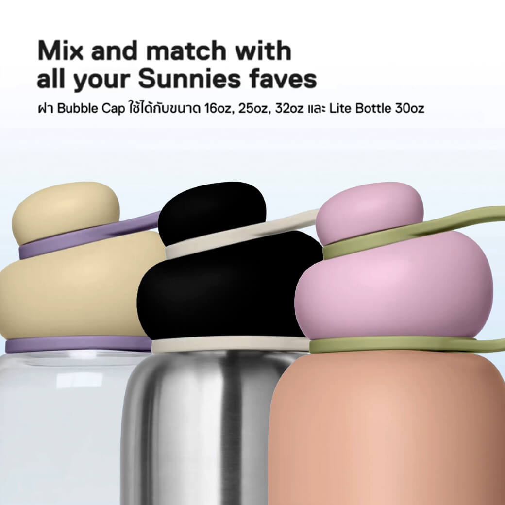 • Mix and Match ได้เต็มที่: Bubble Cap ใช้ได้กับขวด 16oz, 25oz, 30oz และ 32oz