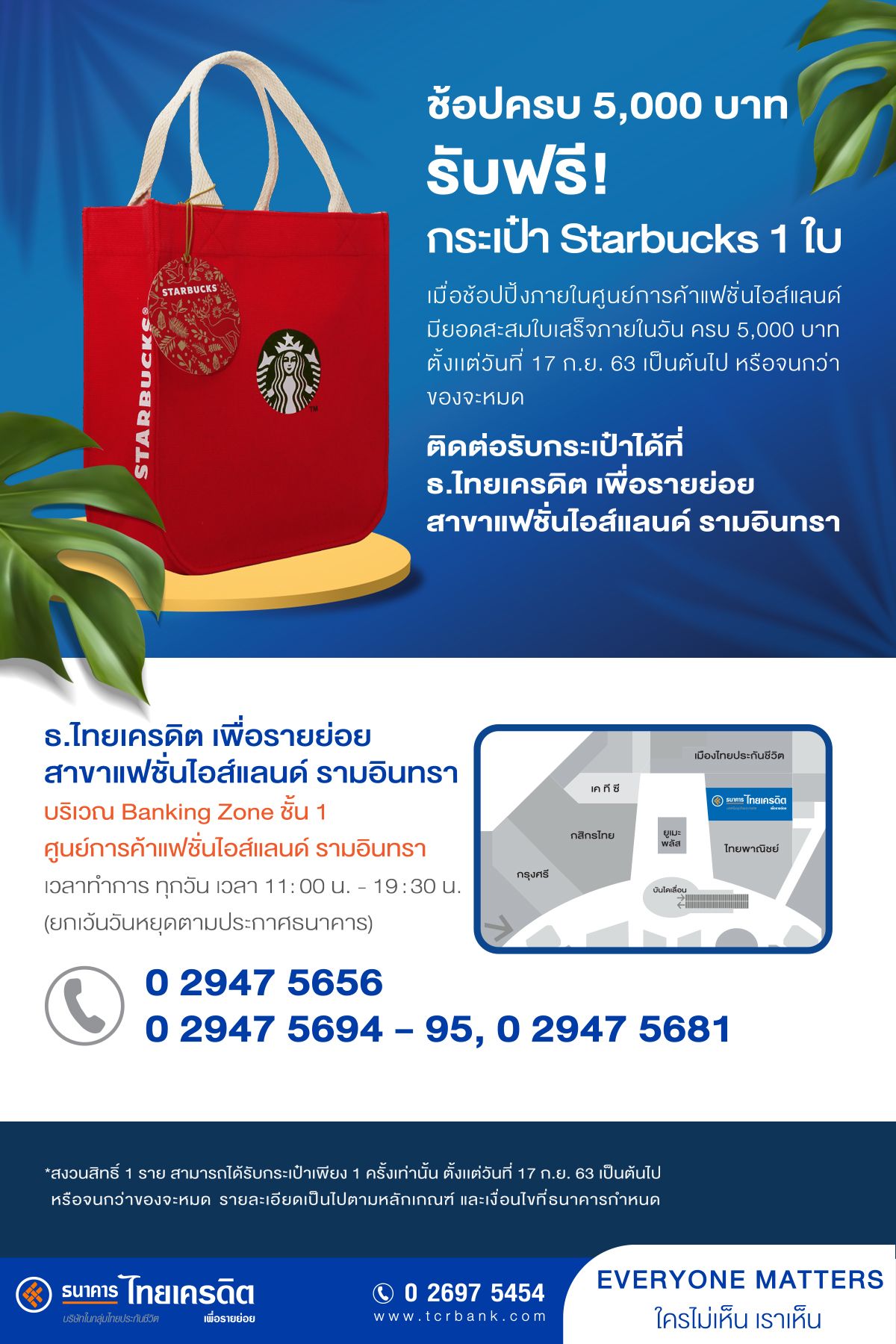 Thai Credit ช้อปครบ 5,000 บาท รับฟรี! กระเป๋า Starbuck