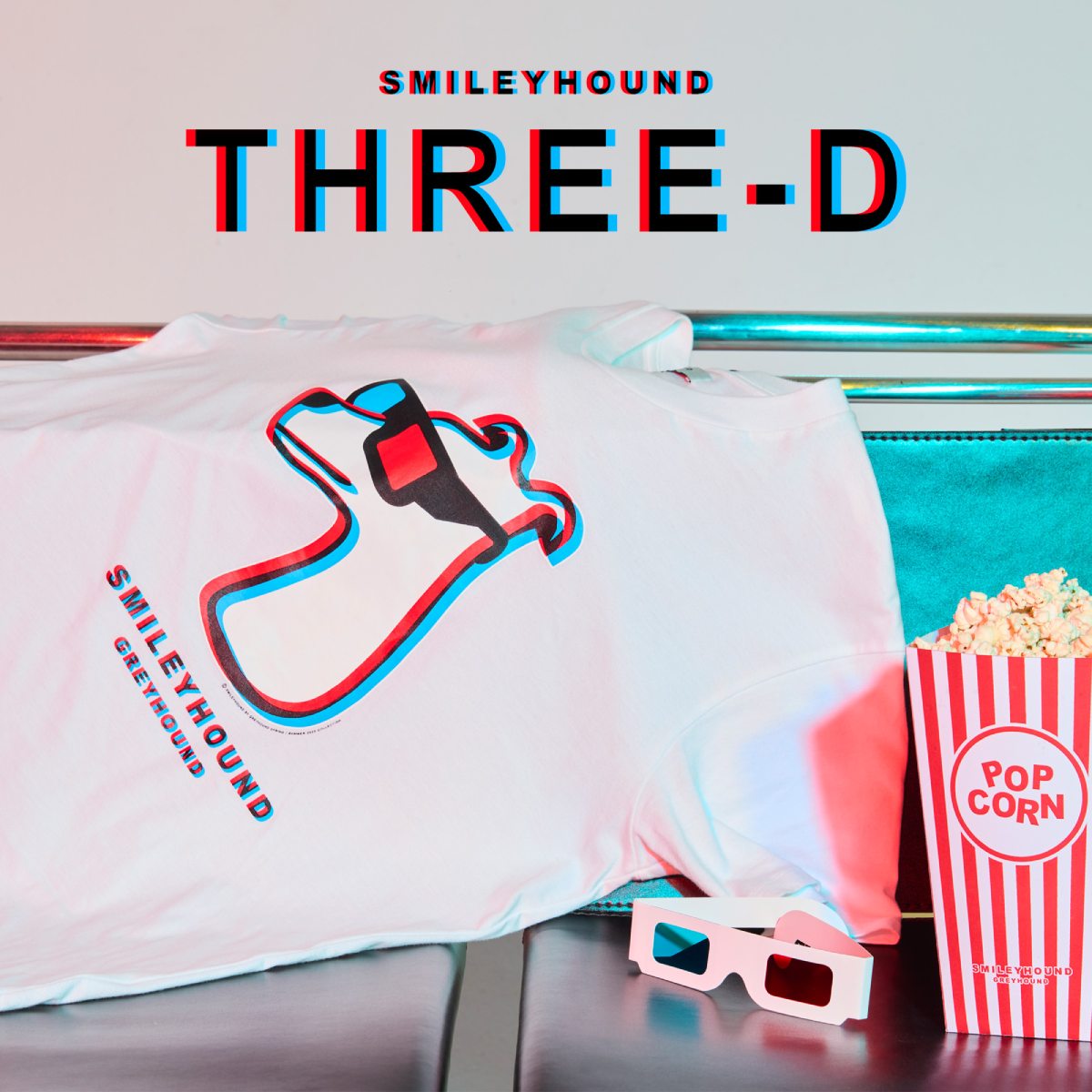 Smileyhound ‘Three-D’ พร้อมพาทุกคนเข้าสู่โลกสามมิติ จากเทคนิคการสร้างภาพ 3D ยุคแรก ช่วงต้นปี 2000 ที่ใช้การนำแสงสีแดง และแสงสีน้ำเงินมาวางร่วมกันให้ได้จุดตัดจนเกิดเป็นภาพซ้อนเหลื่อม ความสนุก คือ เราต้องหยิบแว่นตาสีแดงข้าง และน้ำเงินข้างมาส่องดูเพื่อให้ภาพที่ซ้อนกันเป็นภาพที่มีมิตินูนออกมา เราจึงหยิบเอาเทคนิคนี้มาต่อยอดในแง่ของทั้งดีไซน์ และลายกราฟฟิค ของคอลเลคชั่นพิเศษนี้