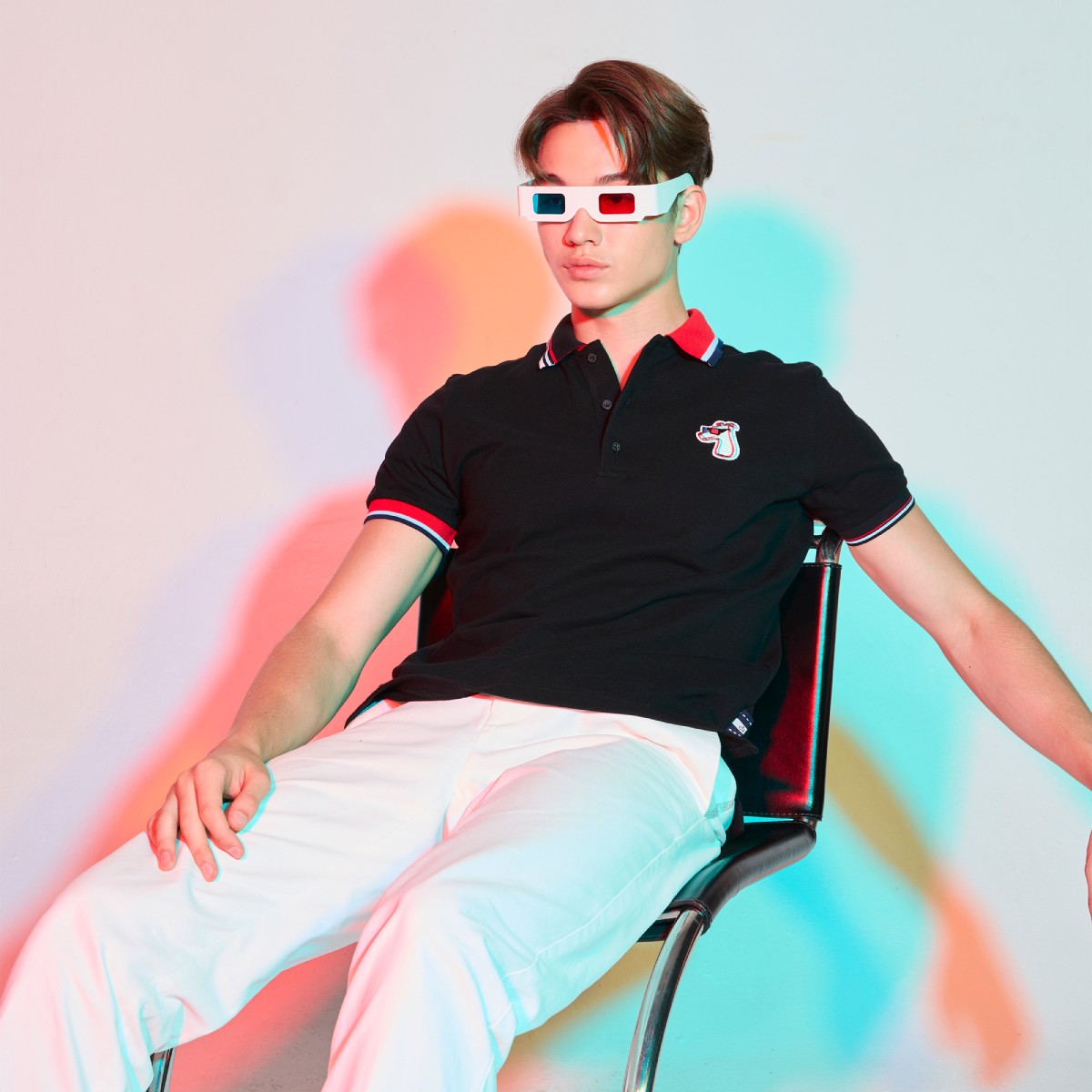 ครั้งนี้เราดึงเทคนิคการซ้อนเลเยอร์ของ 2 สีทั้งสีแดง และสีน้ำเงิน มาแปลงค่าดีไซน์ลงบนโลโก้, ปกคอ, ลายพิมพ์ และการวางผ้าลายทางสลับสี (Stripes) ที่ให้เกิดภาพมิติใหม่ๆ รวมถึงสีสันในคอลเลคชั่น เพิ่มความสนุกทั้งสีแดง น้ำเงิน แต่ยังคงความเรียบง่ายด้วยสีขาว และสีดำ