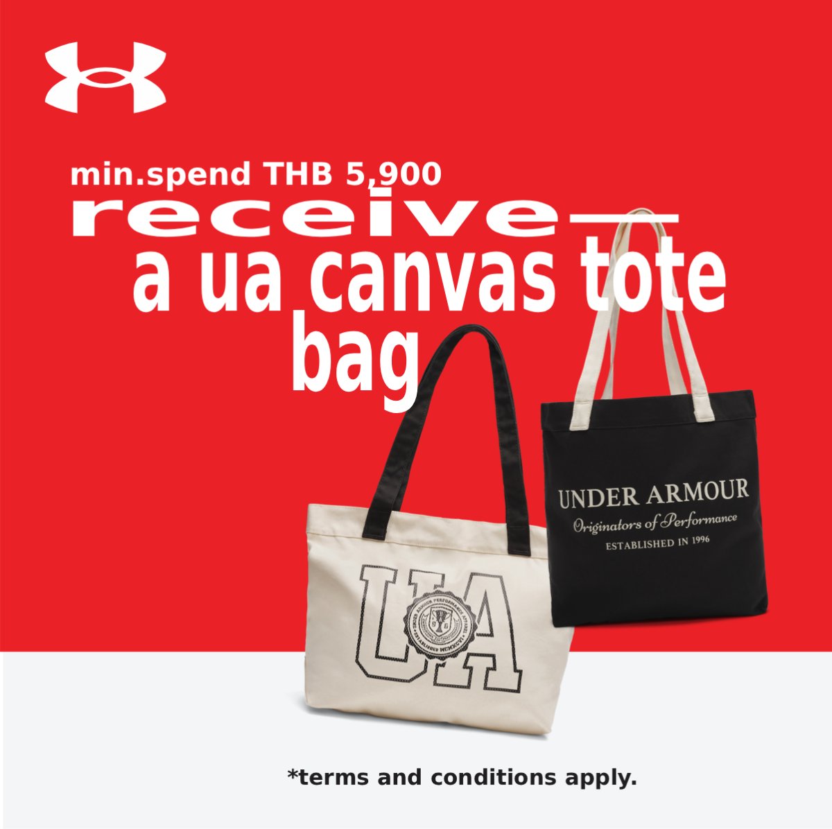 - รับฟรีทันที UA Canvas Tote Bag (มูลค่า 1,290 บาท)