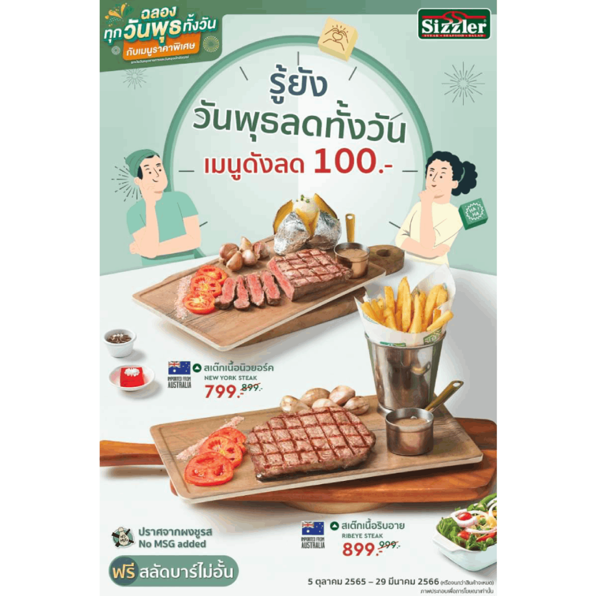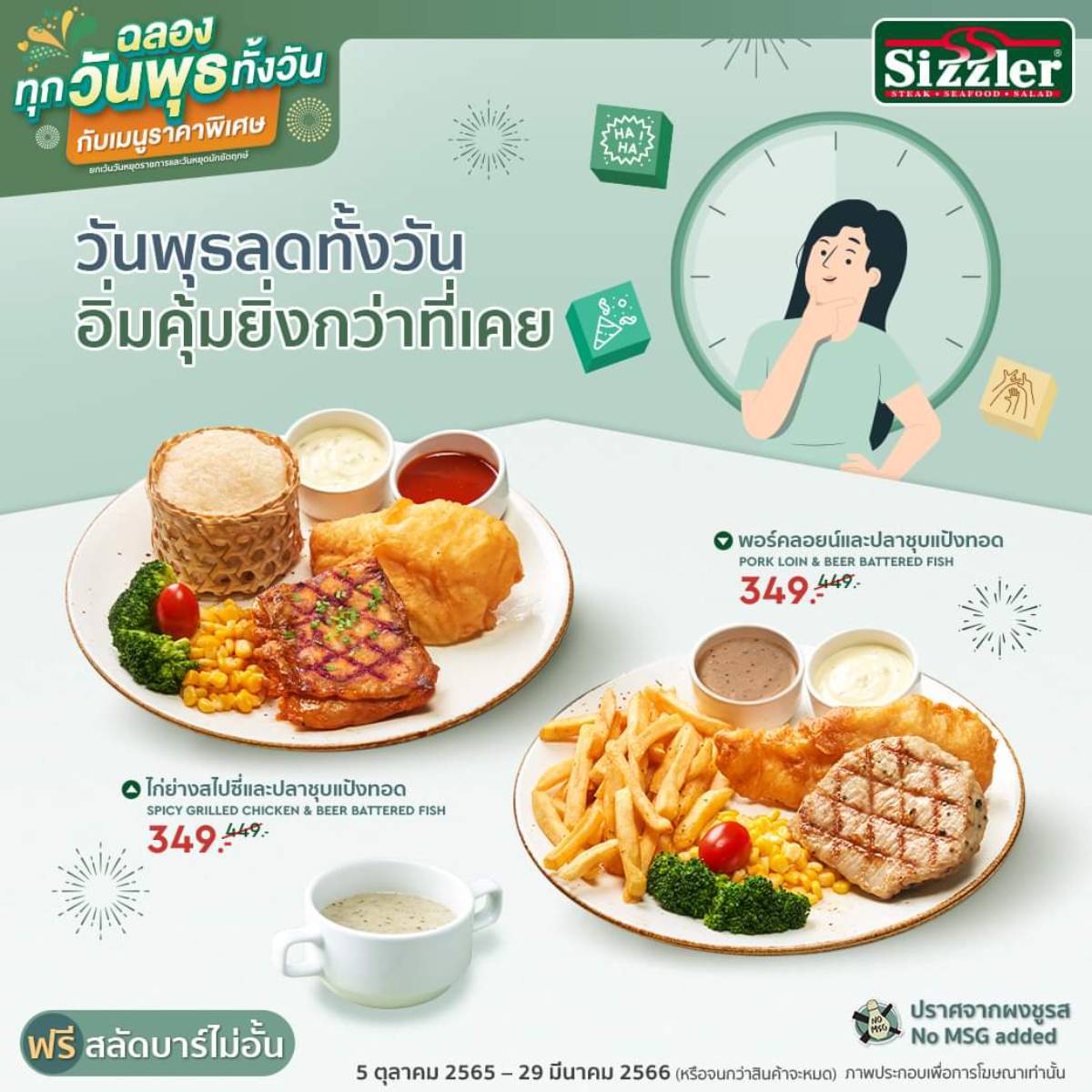 - เงื่อนไขเป็นไปตามที่บริษัทกำหนด คลิก https://www.sizzler.co.th/th/promotion/196