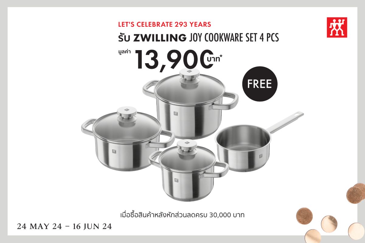 - ช้อปครบ 30,000 บาท (หลังหักส่วนลด) รับชุดหม้อ รุ่น JOY 4 ชิ้น มูลค่า 13,900 บาท