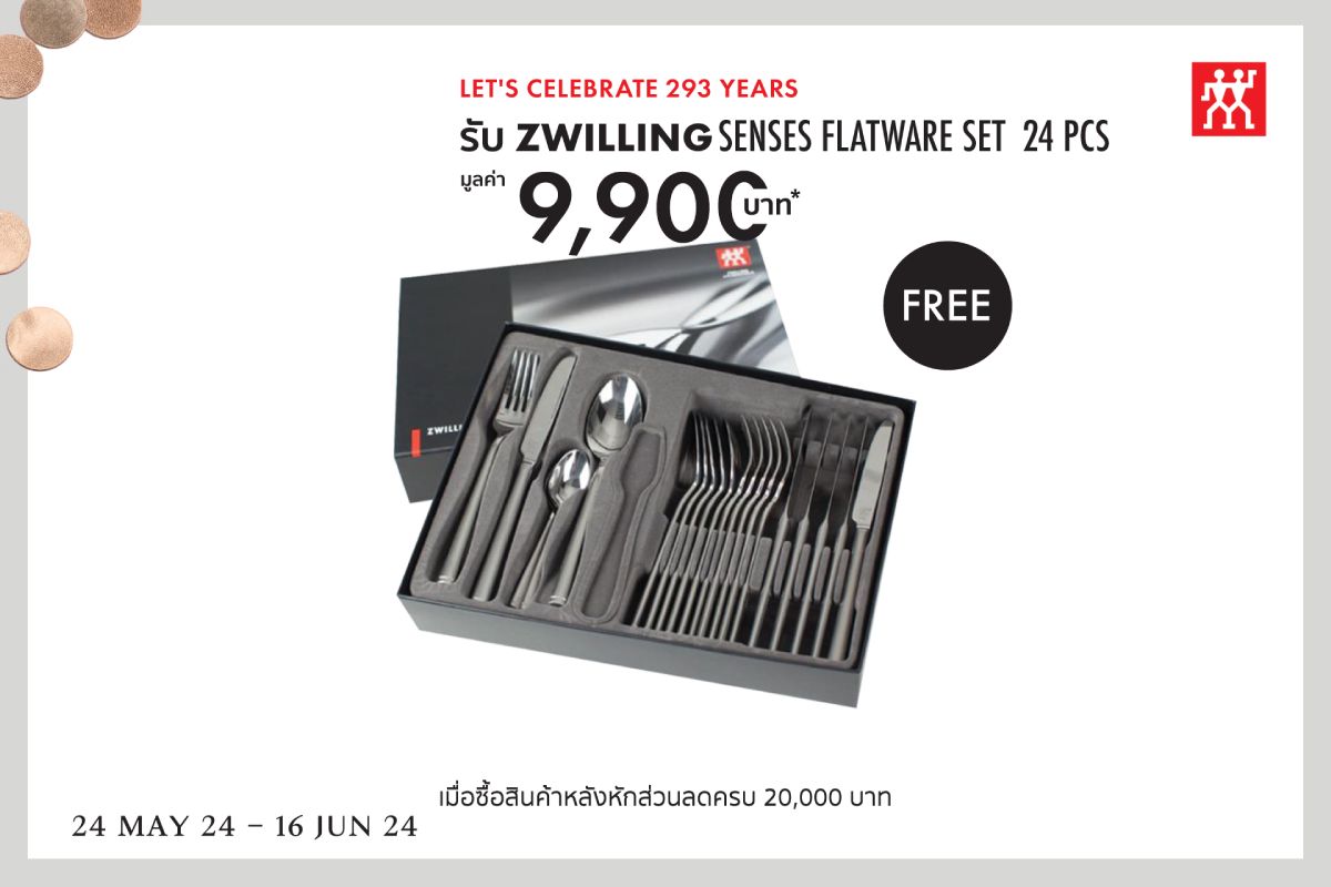 - ช้อปครบ 20,000 บาท (หลังหักส่วนลด) รับชุดช้อน ส้อม มีด รุ่น SENSES 24 ชิ้น มูลค่า 9,900 บาท